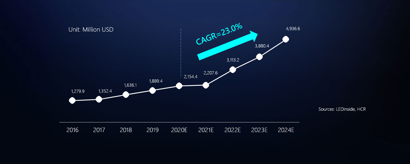 The professional display solutions market has broad room for growth, and the market size in 2024 will be 2.5 times the current size.